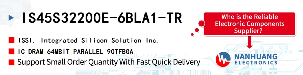 IS45S32200E-6BLA1-TR, ISSI authentic parts in stock from ISSI authorized distributors, order today, can ship immediately.