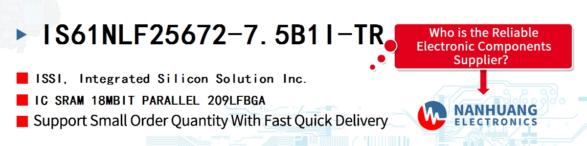 IS61NLF25672-7.5B1I-TR, ISSI authentic parts in stock from ISSI authorized distributors, order today, can ship immediately.